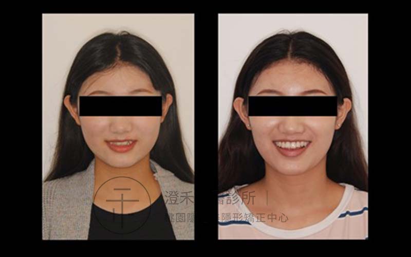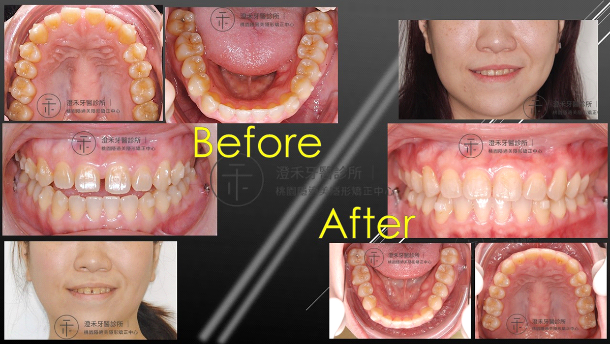 因為困擾了許久,患者接受了隱適美隱形矯正方式,讓牙縫關緊,也把患者有開咬的情況也一起調整到正確的咬合關係。不僅美觀也能輕易切斷食物正常飲食。如果也想檢視門面是否完美的你/妳