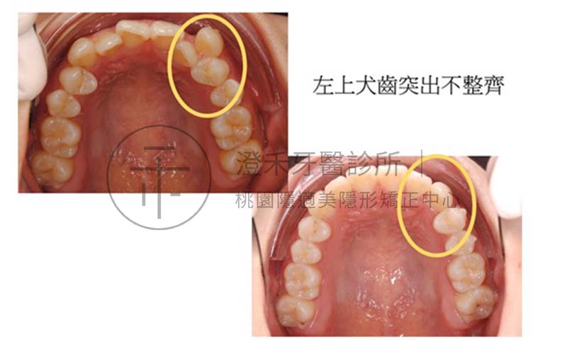 35歲男性,最在意嘴型輪廓較為突出,想改善牙齒不整齊之外,右上方的犬齒為埋伏齒 經醫師診斷,透過隱適美矯正方式,讓埋伏在裡面很久的犬齒長出。在醫師巧手設計,花了一年左右的時間,讓看不見的牙齒,悄悄地跑出來,實在太厲害了