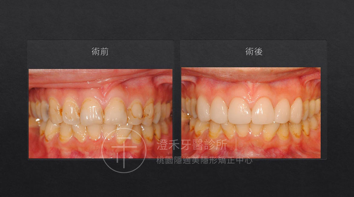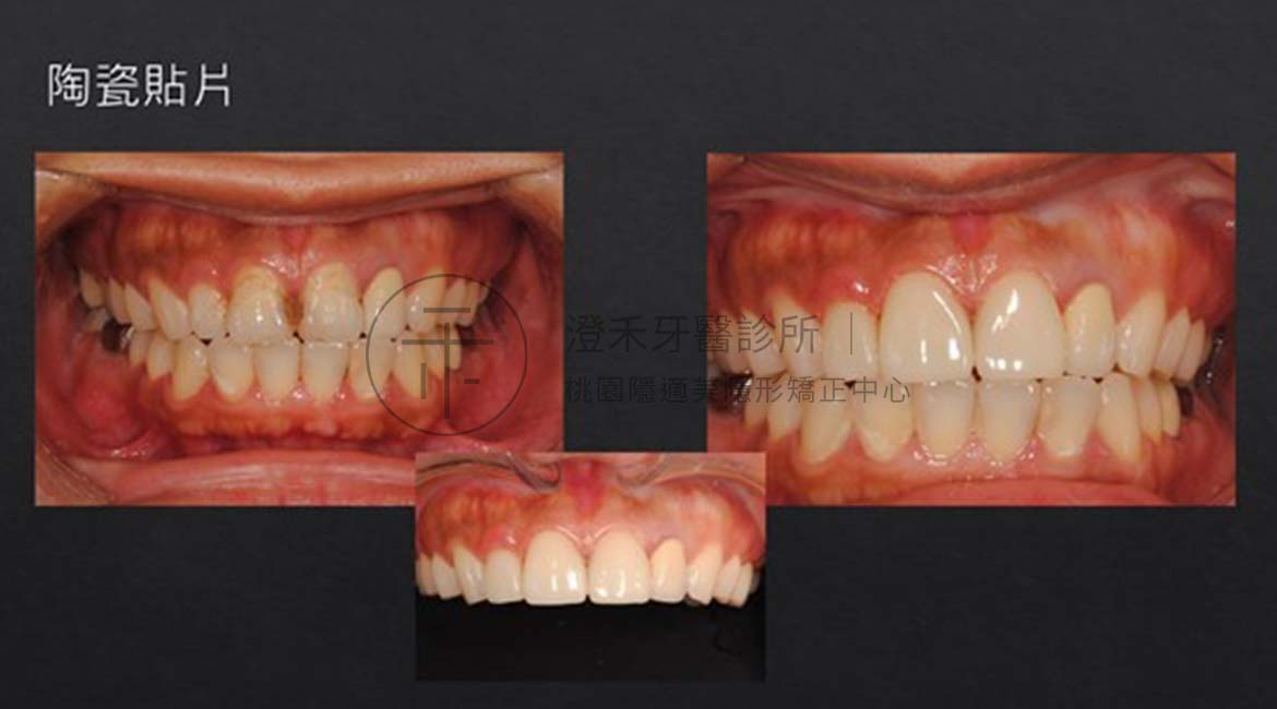 陶瓷貼片 首頁 成功案例 陶瓷貼片 前牙因填補材料變色,想更換成陶瓷貼片較為美觀 聲明:本所療程皆由專業醫生評估後,依照個人口腔狀況進行治療。因每位患者個別狀況不同,術後狀況也不盡相同,需親來本所由醫生評估。