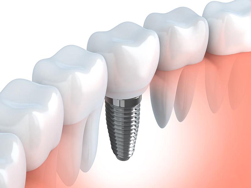 人工植牙治療係以純鈦金屬人工牙根取代原本以崩壞的牙根,此方法就不需要磨損到相鄰的真牙。